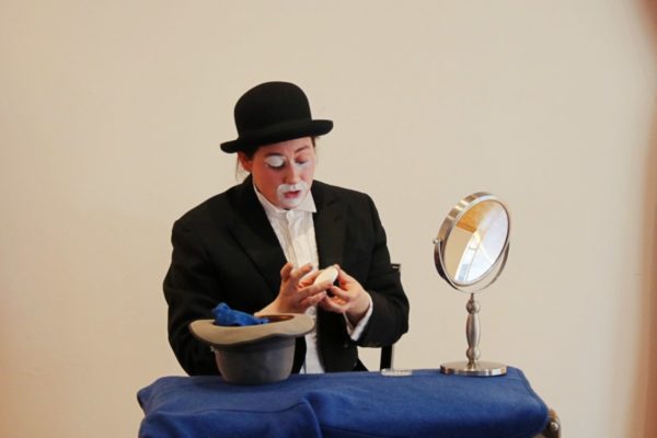 Mit forschenden Kinderaugen begleiten wir Clown Kürbis, wie er sich aus seiner Alltags-Verkleidung befreit, um als Clown in Erscheinung zu treten. Ein großer Spaß, wenn er dann sein Spiel entfacht und zum Mitspielen einlädt.